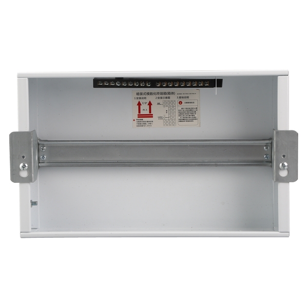 2、安裝方式:金屬箱體與塑料面蓋相配合,特別適用于建筑,裝修工程中配電箱采用的暗裝方式。