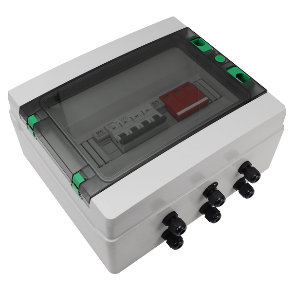道,1個輸出通道,單個MPPT逆變器)。箱體采用聚氯乙烯工程材料,具有阻燃、溫升、抗